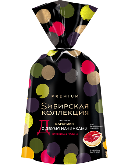 тесто – мука пшеничная высший сорт, вода питьевая, глицерин пищевой, масло подсолнечное, соль пищевая, улучшитель муки (кукурузный крахмал, фермент α-амилаза); начинка №1 – клубника замороженная, сахар-песок, смесь пищевая (крахмал кукурузный, декстроза); начинка №2 – малина замороженная, сахар-песок, клубника замороженная, смесь пищевая (крахмал кукурузный, декстроза)
